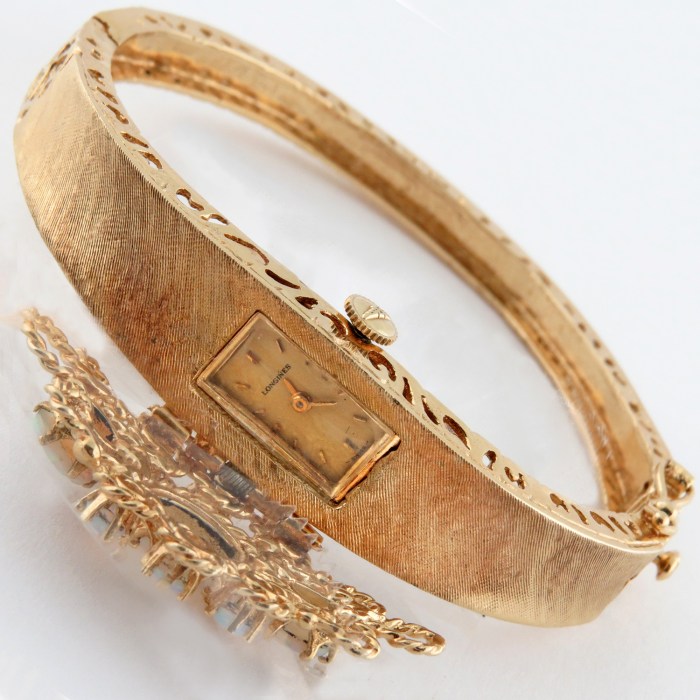 LONGINES 14K Ladies Vintage Hand-Wind Bangle Opal Adorned Cover 1940s Yellow Gold