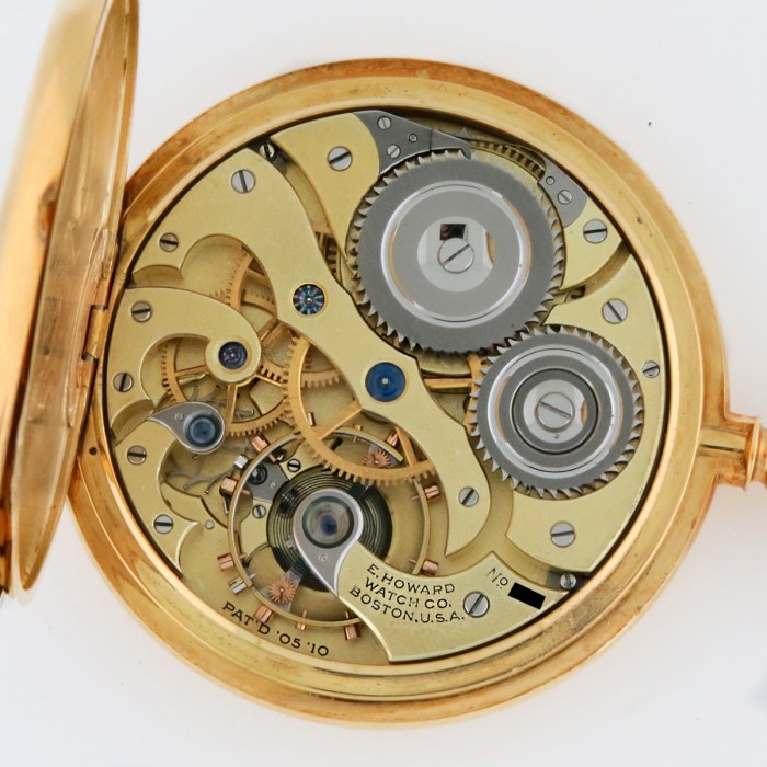 | CASE ADORNMENTS: | E. Howard Watch Co Boston Laurel Wreath Engraved on Dustcover |